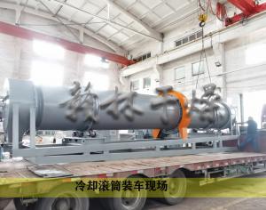 物料通過(guò)高度煅燒后進(jìn)入回轉(zhuǎn)滾筒內(nèi)部。冷卻水通過(guò)循環(huán)水泵進(jìn)入滾筒外夾套,熱的物料在滾筒筒體內(nèi)壁不斷地交換接觸面,從而實(shí)現(xiàn)冷卻