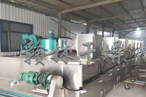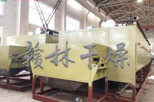 物料有網(wǎng)帶帶動(dòng)依次經(jīng)過多個(gè)干燥單元。到干燥機(jī)尾端干燥過程全部完成。成合格產(chǎn)品排出。